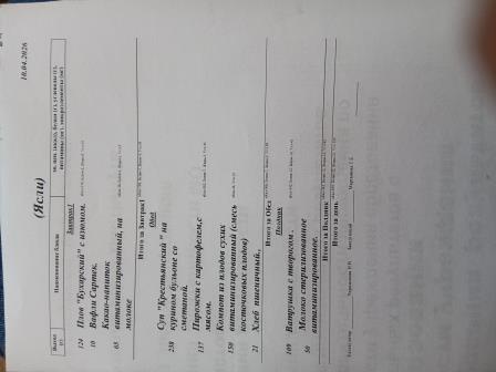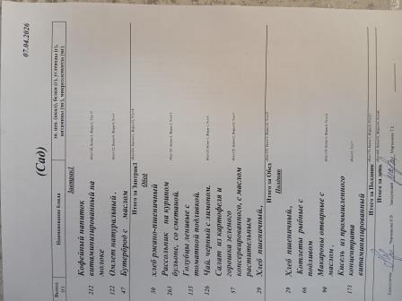 Утвержденное ежедневное меню