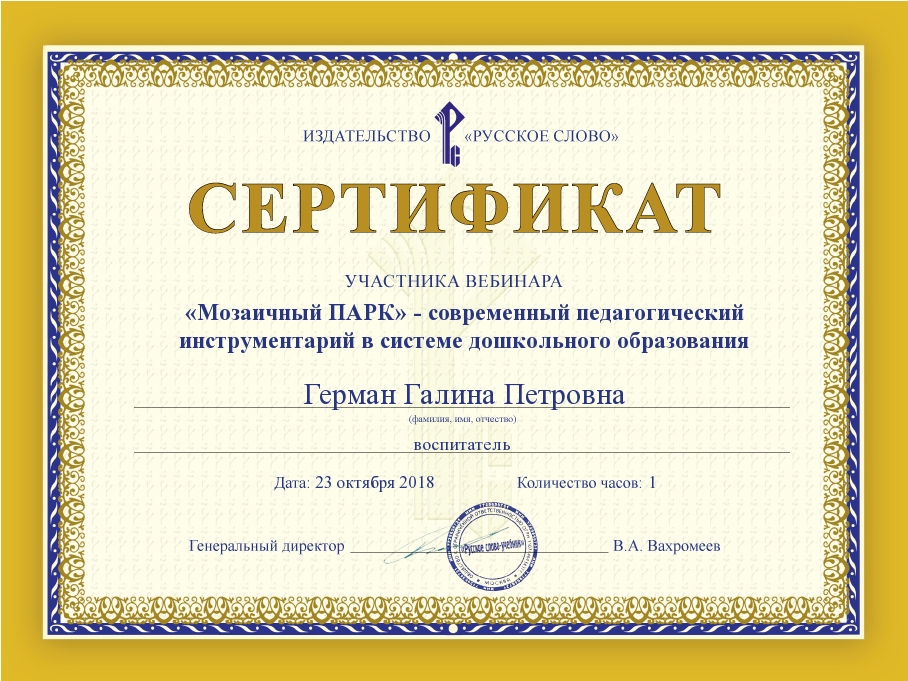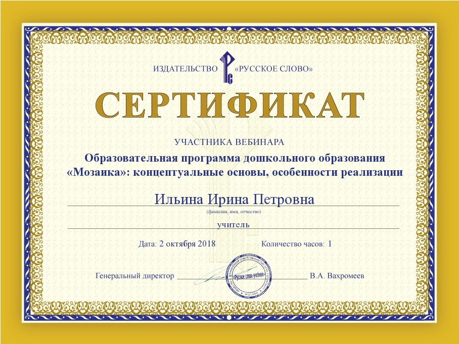 Участие в вебинарах по УМК "Мозаичный Парк" (см. во вложении)